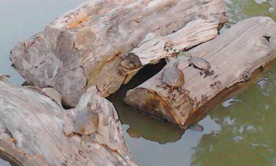 おはようございます。起床時間になりました。猿沢池のカメも早起きです。