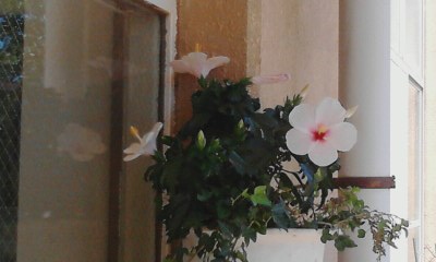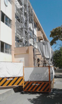 柿の実も大きくなりました。ハイビスカスのピンクが咲いています。先週の2年生職場体験、3年生修学旅行も無事終わり、久しぶりに全校生徒がそろっています。トイレの改修工事も進んでいます。