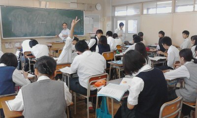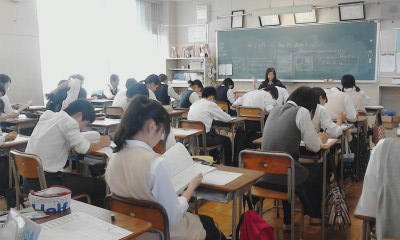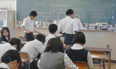 修学旅行のまとめをしているクラスもあります。美術は修学旅行をテーマにした切り絵の制作です。