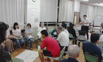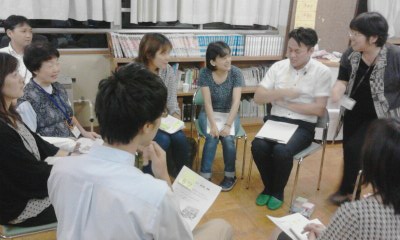 その後4つのグループに分かれ、兵庫教育大からいらっしゃったファシリテーターの司会進行で話し合いが始まりました。
