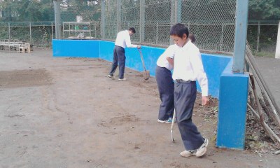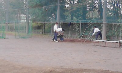 野球部が放課後の練習に備えてグラウンド整備をしていました。