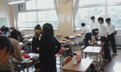 昼休みは生徒にとってはとても楽しい時間のようです。はしゃいでいる子供たちです。