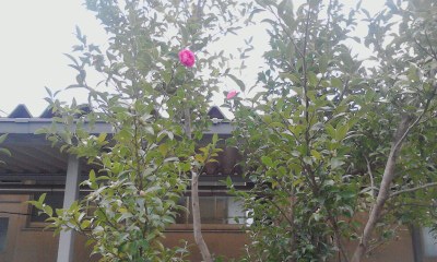 プール横の山茶花が咲き始めました。つぼみもたくさんついています。季節は動いていますね。