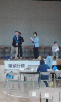 最後に紙飛行機を飛ばす実験。