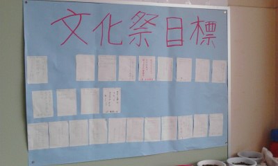 29日は文化祭。合唱だけではありません。1年生のクラスには「文化祭目標」が貼ってありました。また、演劇部の生徒が朝練習に取り組んでいます。演劇部は11月2日に南大沢文化会館の芸能祭に出場します。