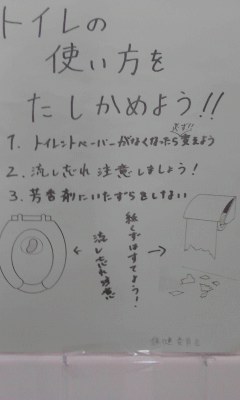 保健委員会がトイレの使い方について、使う人がみんな気持ちよく使えるために4種類のポスターを作り掲示しました。どれも、中学生ならば当たり前だというような内容ですが、それが当たり前に守れていることがマナーになります。