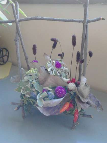 職員室前のフラワーアレンジメント作品です。素敵です!