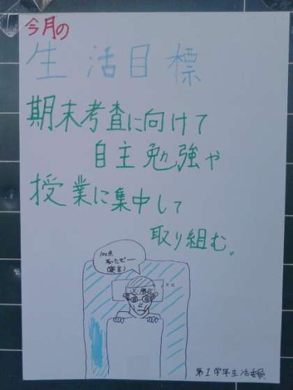 生活委員が考える生活目標。11月の1年生。