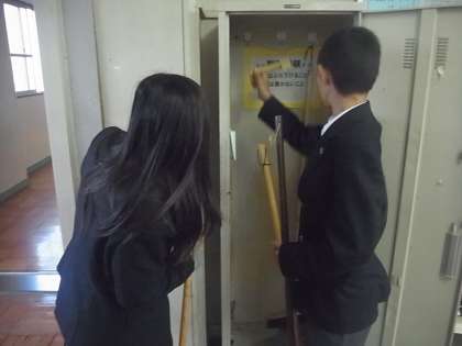 整美委員会が委員会後にクラスの清掃用具点検を行っています。担当の相沢先生が、「簡単に新しい清掃用具と交換するのではなく、ネジを付け替えたり、ブラシをかけたり、自分たちで修理して使ってくれています」と言っていました。みんな、偉い!