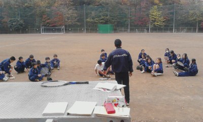 2時間目の1−3の体育の授業です。相原さんは全クラス(みなさわ学級も含め)の授業を見て、「生徒の皆さんがとても落ち着いて授業に取り組んでいますね。教室の掲示物もきちんと貼られています」と感想を話されていました。