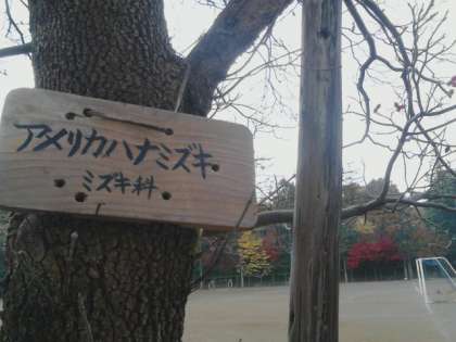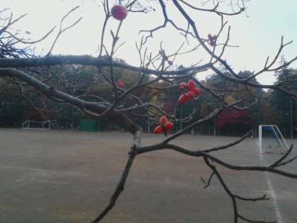 校庭にたくさんあるアメリカハナミズキ。葉が落ち、赤い実だけが付いています。