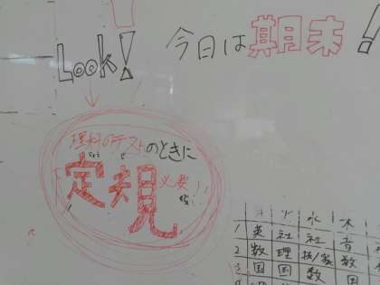 今日は期末考査2日目です。科目は1校時理科、2校時社会、3校時技術家庭です。
