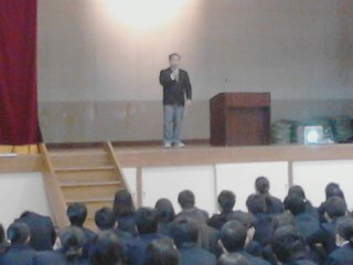 始業式の後、愛甲先生の安全指導の話です。今回は「降雪時の注意」です。