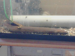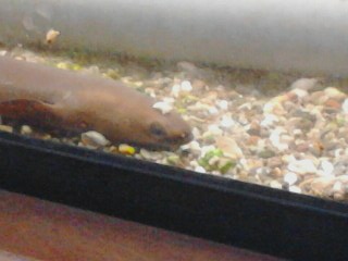 応接室前のウナギも冬眠?に近い状態になっています。動きがほとんどなくじっとしていることが多いようです。目も眠そうですね。