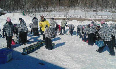 ブランシュたかやまスキー場に着きました。ブーツの確認中です。