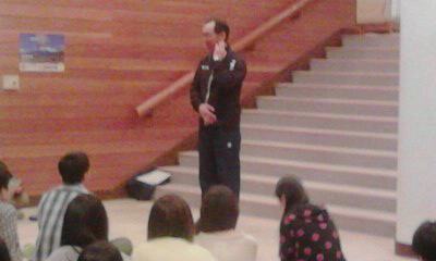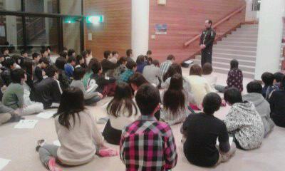 インストラクターの代表の方に、スキーについて講話をしていただいています。みんなよく聞いています。