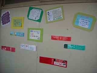図書室の廊下には、図書委員さんが書いた新着本のポップを掲示しています。どれも力作です!