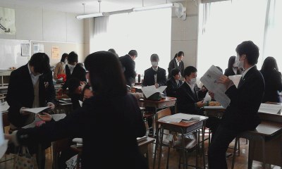3年生の様子。これは授業が終わった後、帰りの学級活動までの様子です。配布物を配ったり、明日の教科の持ち物を確認したりと結構忙しい時間です。