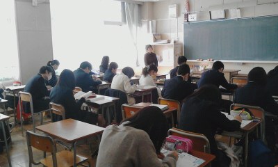 雪は相変わらずたくさん積もっていますが、今日はとても良い天気です。早く溶けてくれるとよいのですが。さて、明日から学年末考査一週間前になります。どのクラスも試験に向けて授業にしっかり取り組んでいます。ひとまず安心です。3年生です。