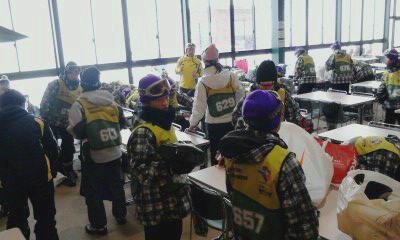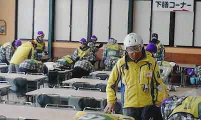 2日目の講習が始まります。今日は雪のため食堂でスキーブーツに履き替えます。