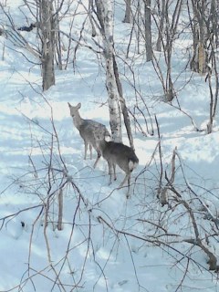 宿舎からスキー場までの道路の脇には鹿がたくさんいました。かわいい?