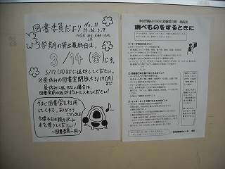 前期後期通じて毎月発行された図書委員会だより(私も記事を書かせていただきました)も今回が最終号。