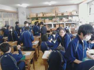 木彫の時計の制作が終わっていなかった生徒ががんばっています。結構の人数ですね。
