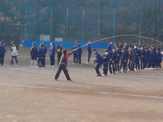 また始まりました、大縄の朝練習!17日の本番に向け朝から跳んでいます。1年生の生徒に尋ねたところ「大縄は八木先生が好きなんですよ、きっと。でも楽しいからいいんですけど・・・」との答えでした。