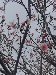 西門そばの梅の樹です。ずいぶん先に咲いた白梅に続き、紅梅が咲き始めました。春ですね。