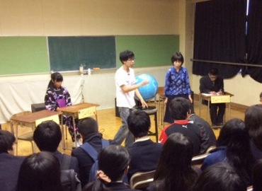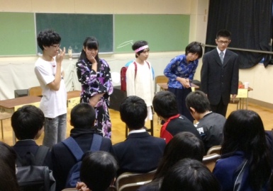 演劇部の校内公演がありました。部室からあふれるほどの生徒が集まり、その中で楽しい公演が行われました