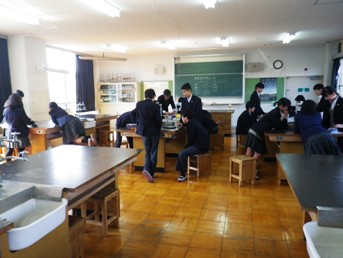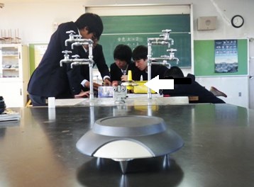 理科の近藤先生の2年生の磁界の授業です。コマが浮き上がって回っています。
