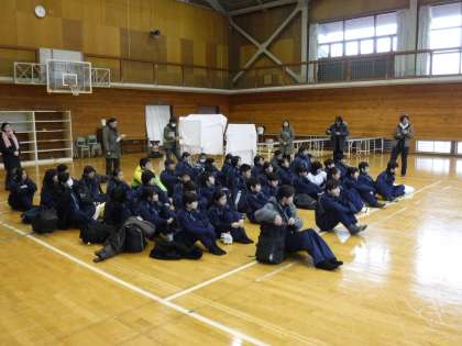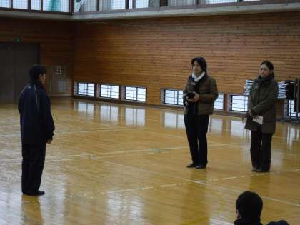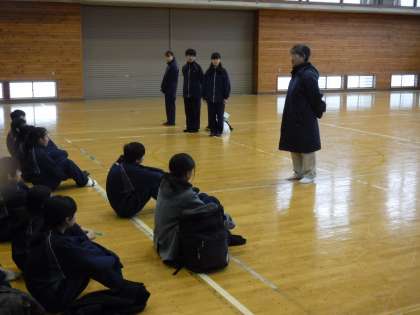 着替えをおこなった体育館で一足早い解散式を行いました。