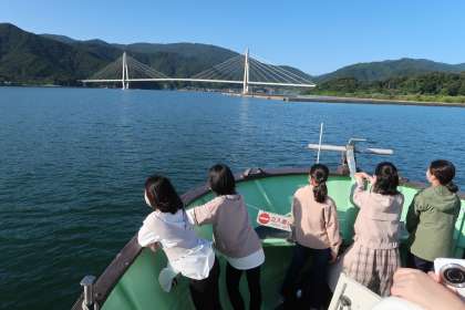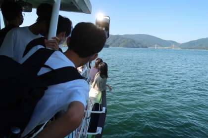 遊覧船に乗り、洋上から復元された引揚桟橋を見学しました。なかなか乗る機会のない船ですが、海風が心地よかったです。