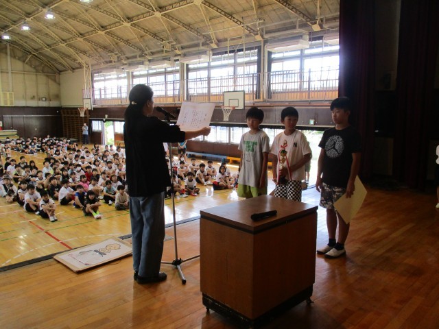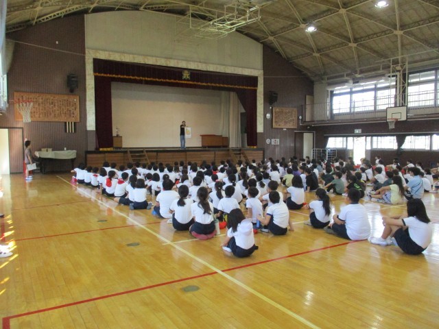 今週も、新しい週の始まりは全校朝会からです! 今日は、校長先生からのお話や、習い事を頑張っている仲間(空手・チアリーディング・野球)の表彰がありました。