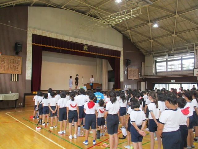 校長先生からは、「いよいよ今週末が運動会、スローガンのMTK(M・・・みんな T・・・たのしく K・・・きょうりょくしよう)を意識して、頑張ろう!」というお話がありました。また、今日からスタートした教育実習の先生の紹介もありました。