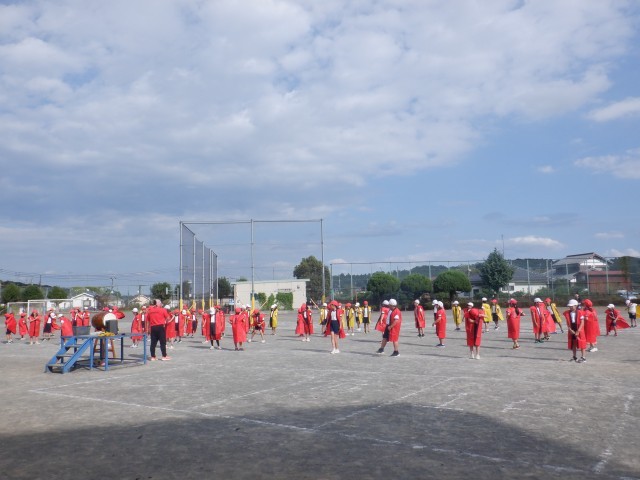 残暑が厳しい時期は体育館での練習が中心でしたが、先週からは校庭での練習が始まっています。今日は、1校時に全校練習を行いました。また、低・中・高それぞれの校庭での練習も、着々と進んでいます。