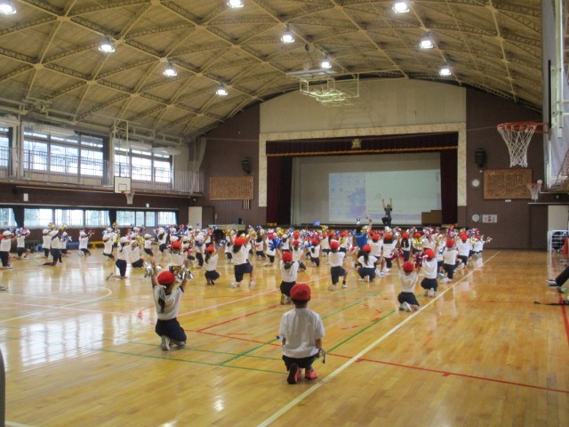 今日は雨の一日。運動会へ向けての練習は、体育館で行いました。校庭でも体育館でも、みんなしっかり練習に取り組む元木小の子どもたち、立派です!