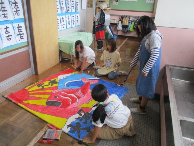 当日に使う道具の準備も大詰め。大漁旗かな!?