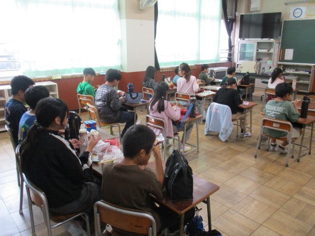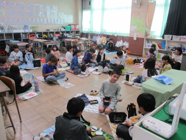 お昼の時間、お弁当はたてわり班で食べました。おいしいお弁当に、笑顔がたくさんはじけていました(^O^) お弁当のご準備のご協力、ありがとうございました。延期となる10月23日(木)はよいお天気になりますように!