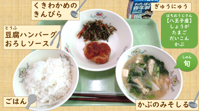 今日の給食は、旬の八王子産かぶをたっぷり入れたみそ汁です!