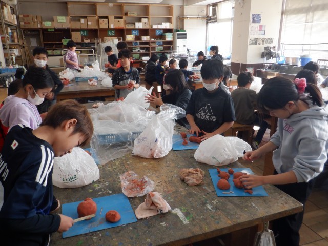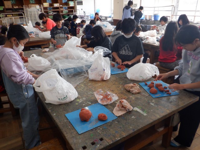 図工の粘土も黙々と一生懸命取り組んでいます!