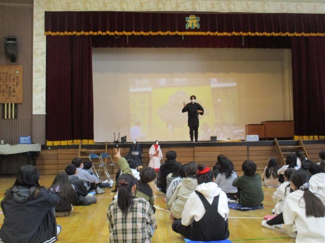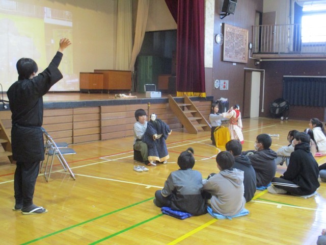 「笑顔と学びの体験プロジェクト」の一環として、6年生が車人形の劇を鑑賞したり、いろいろなお話を伺ったり、実際に体験をさせていただいたりしました。