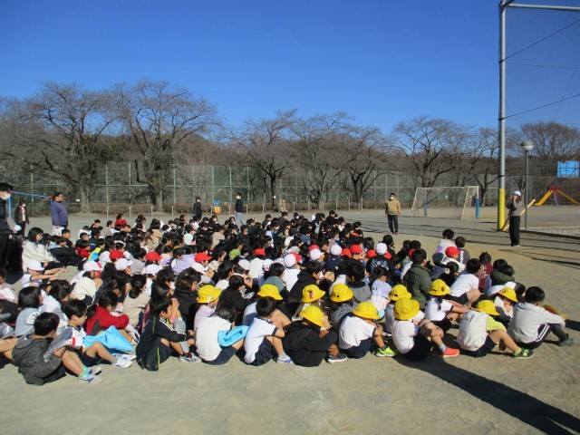 休み時間なので、校舎内や校庭など、それぞれがいる場所がバラバラです。もしかすると、大人が近くにいないかもしれません。でも、そんな時でも放送をよく聞いて行動したり、自分でよく考えて行動したりといったことが大事になってきます。いざという時が来ないことを祈りつつ、でも、いざという時は今日の訓練が生きる、そういう訓練の姿でした。