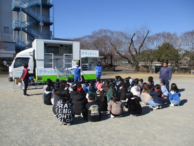 4年生は、起震車体験も行いました。大きな揺れが襲ってくると、誰しもパニックになってしまうものです。しかし、こうした経験をしておくことが、いざという時につながります。