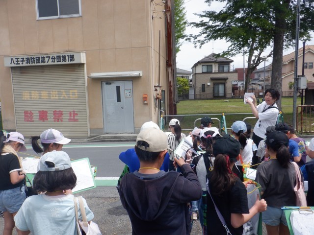 3年生の社会、「わたしたちのまちと市」の学習です。みんなが生活している学校周辺の様子は? 実際に歩いて確かめました。