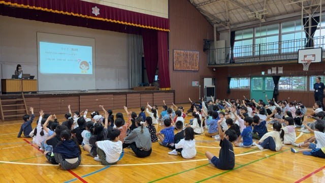 昨日の朝、保健給食委員会集会がありました。「もったいない」をテーマにクイズやインタビューを交えて発表がありました。ながしを掃除する時に石鹸を使わないように!落とし物に気をつけて!給食の残菜を減らしていこう!など、日常の「もったいない」に気をつけて生活していこうと呼びかけていました。