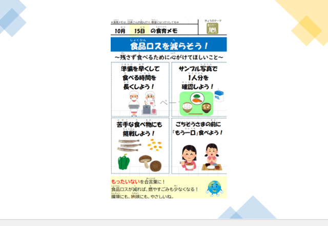 今日はもったいない大作戦ウイークの2日目です。クラスの目標を頑張って達成してください。