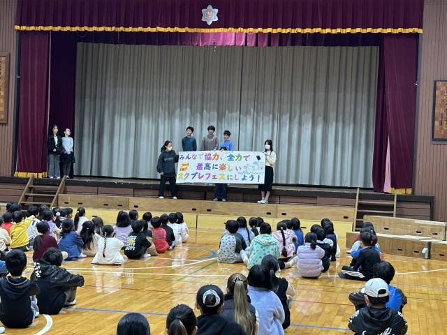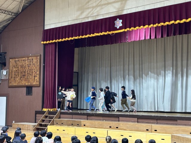 今朝は「スクプレフェス紹介集会」がありました。最初に代表委員からスローガン「みんなで協力 全力で 最高に楽しい スクプレにしよう」の発表がありました。続いて、低学年「11ぴきのねこ」中学年「ほんとうの宝物は?」高学年「夢から醒めた夢」の紹介を代表の友達が寸劇を交えながら紹介していました。どの発表もはやく本番を見たくなる内容でした。当日を楽しみにしてください。