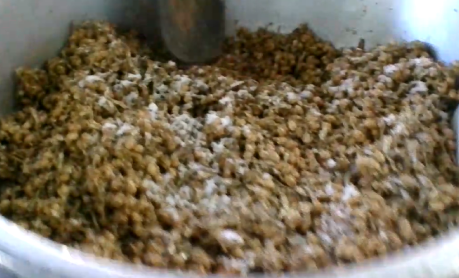 今日の献立の大豆といりこのごまがらめは煎り大豆、ごまめ、ごまをオーブンで加熱して、しょうゆ、砂糖、みりんで作ったたれと絡めて、仕上げにグラニュー糖をふりました。煎り大豆はタンパク質、食物繊維など栄養満点。ポリポリと美味しくいただきます。