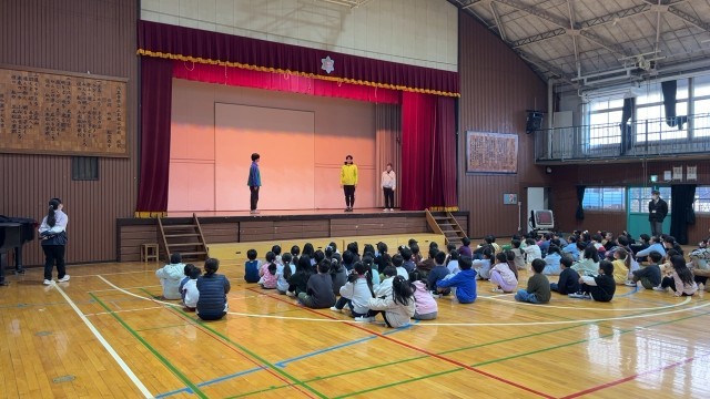 生活指導担当の先生からは、1月の生活目標「礼儀正しくしよう」について、寸劇を交えながら、礼儀とは何かを教えてくれました。記念式典には、たくさんのお客さんが来校されます。礼儀正しい松が谷っ子をお披露目しましょう!!